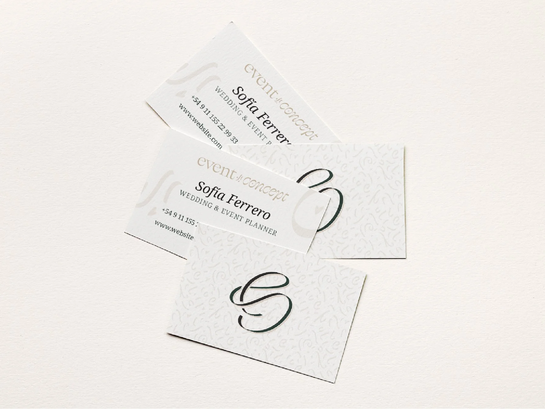 The Event Concept logotype is the core of the brand identity, symbolizing unity and commitment with flowing lines that echo the bonds of marriage. A hidden "S" pays tribute to the founder, Sofía, while the intertwined "E" and "C" reflect the company’s name and mission of blending creativity with innovation. The ribbon element, dynamic and celebratory, represents the company’s adaptability and the vibrant energy of every event they plan.
